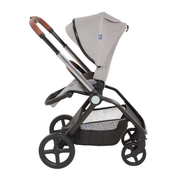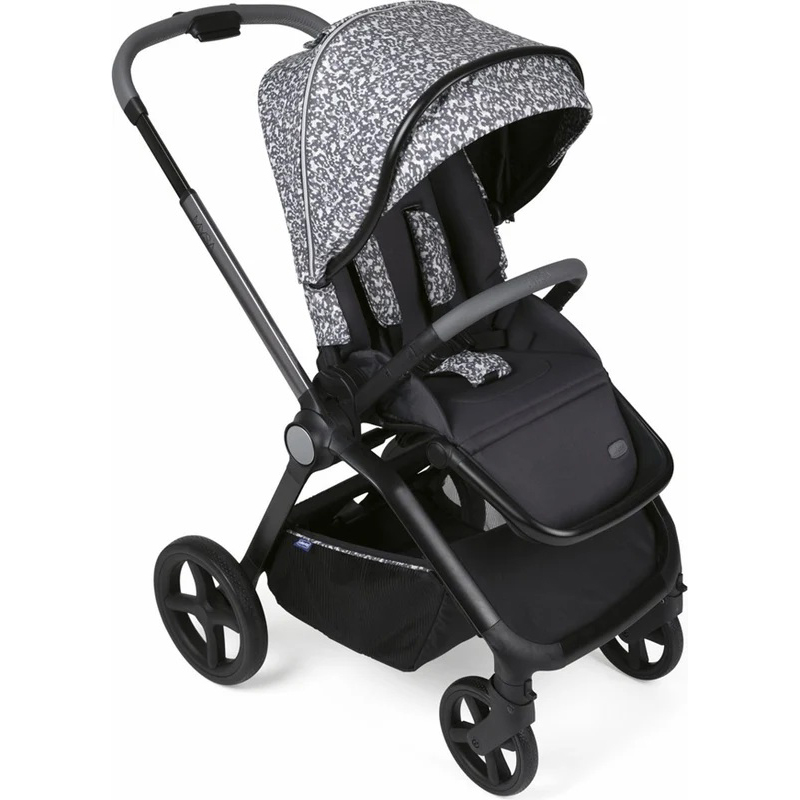 - Seat unit: removable and convertible, backrest adjustable with one hand, flat reclining position, adjustable footrest, 5-point harness system with padded shoulder straps and centre bar, retractable XL canopy with viewing window, water-repellent fabric with UV50+ sun protection, front bar